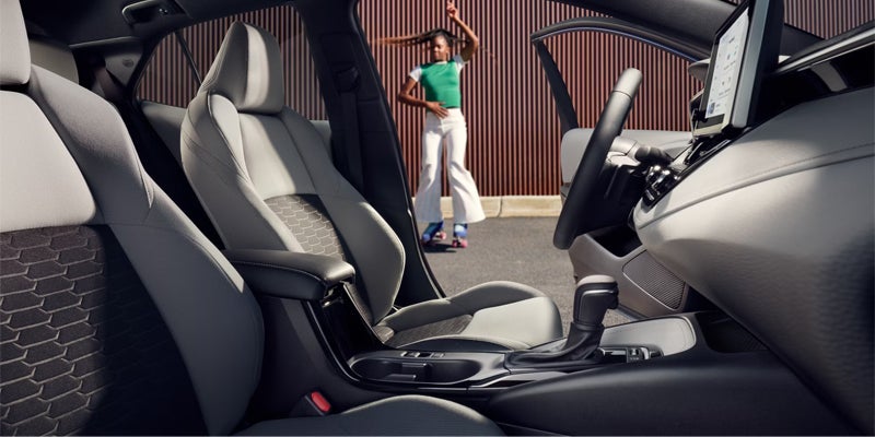 Corolla Hatchback Nightshade has handsome details that turn heads wherever you go. The 18-in. bronze-finished alloy wheels, 2 available two-tone exterior with Midnight Black Metallic roof 3 or all-Midnight Black Metallic exterior, and available accessory vented sport wing give Corolla Hatchback Nightshade’s sporty physique a stylishly enhanced attitude.