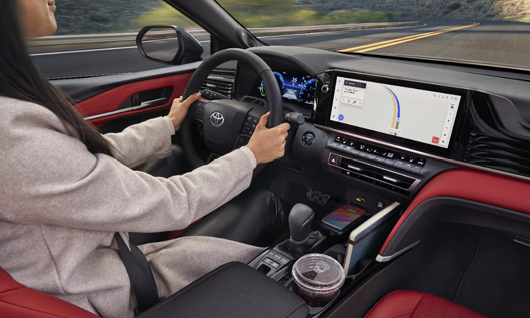 Every Camry includes an 8-inch touchscreen with wireless Apple CarPlay® and Android Auto™ compatibility, along with wireless device charging. Upper trims feature a larger 12.3-inch touchscreen for enhanced visibility and easier interaction with your apps and navigation.