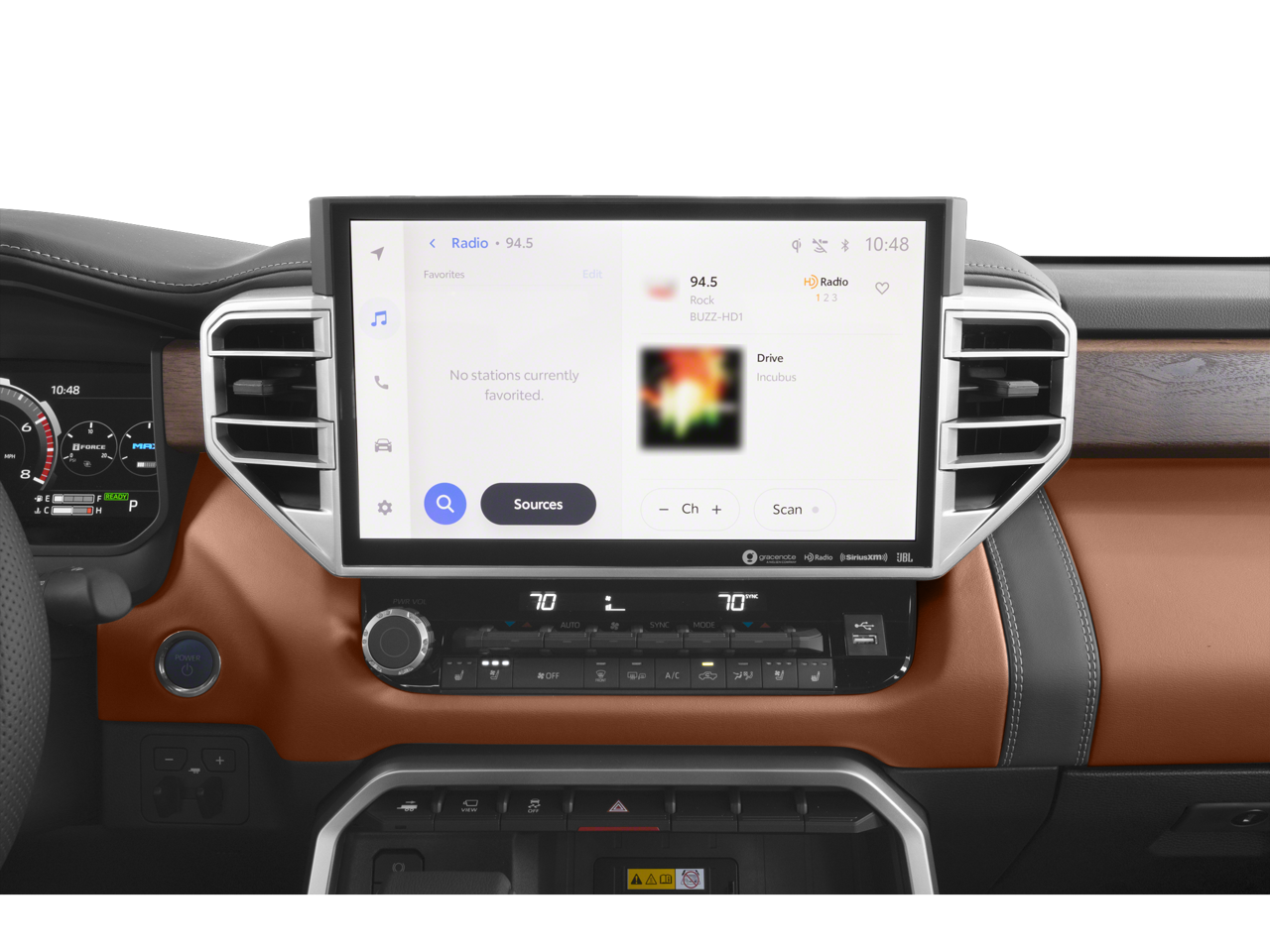 - Radio: Premium Audio w/JBL -inc: 14-inch touchscreen, 12 JBL speakers (including subwoofer and amplifier), Android Auto and Apple CarPlay compatible and SiriusXM w/3-month platinum plan trial subscription, See toyota.com/audio-multimedia for details, Connected services - Safety Connect w/up to 10-year trial, Remote Connect w/1-year trial, Drive Connect w/1-year trial, Service Connect w/up to 10-year trial, Wi-Fi Connect w/up to 3 GB within 1-month trial, See toyota.com/connected-services for details