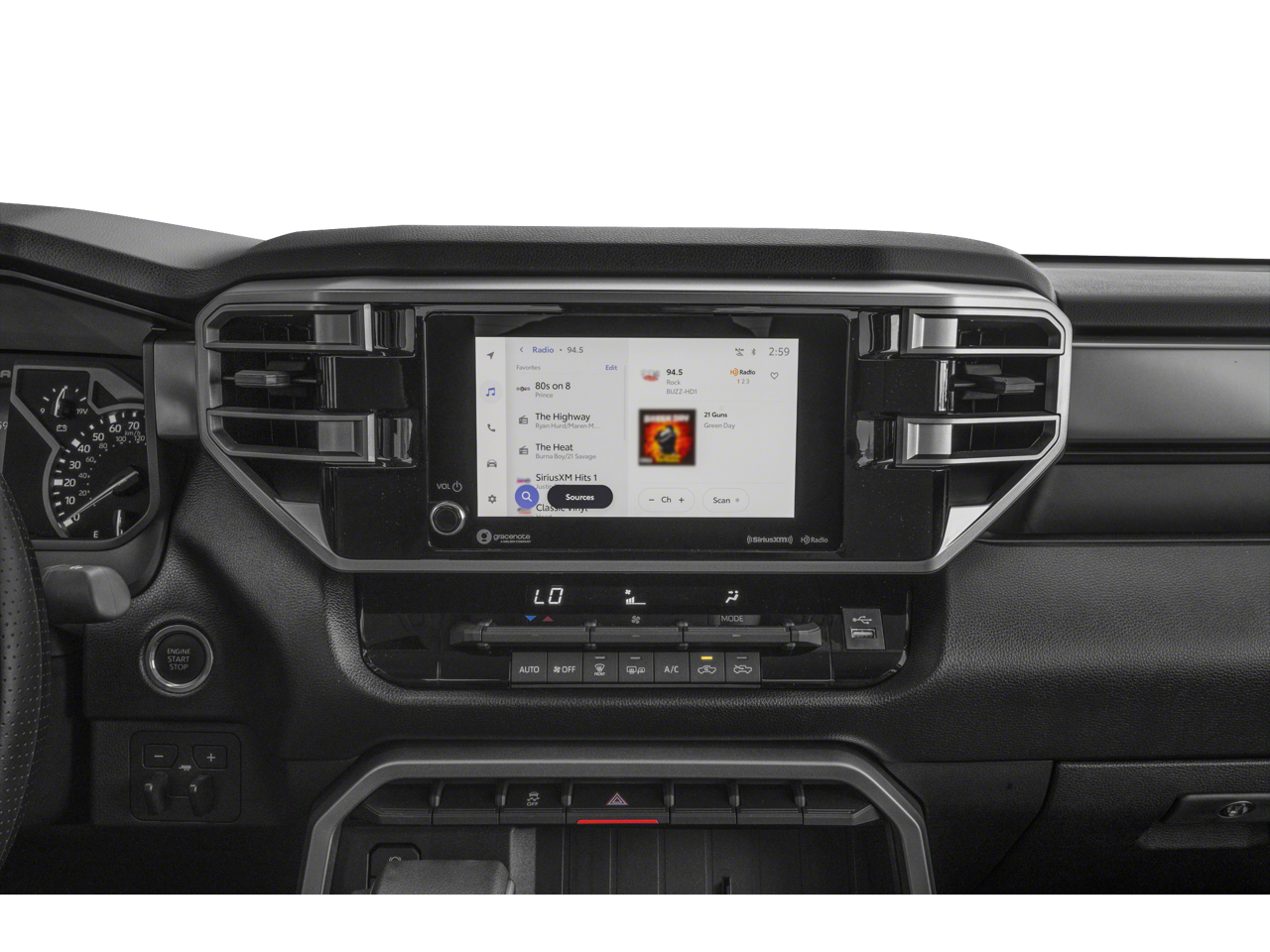 This unit keeps you comfortable with Auto Climate. This 2025 Toyota Tundra 's blind spot monitor enhances safety. The rear parking assist technology on the vehicle will put you at ease when reversing. The system alerts you as you get closer to an obstruction. Bluetooth® technology is built into the Toyota Tundra, keeping your hands on the steering wheel and your focus on the road. Protect this 1/2 ton pickup from unwanted accidents with a cutting edge backup camera system. This model comes equipped with Android Auto for seamless smartphone integration on the road. It offers Apple CarPlay for seamless connectivity. Never get into a cold vehicle again with the remote start feature on this vehicle. The Toyota Tundra embodies class and sophistication with its refined white exterior. The vehicle has a V6, 3.5L (3445 cc) high output engine. The vehicle has four wheel drive capabilities. A trailer braking system is already installed on this vehicle.