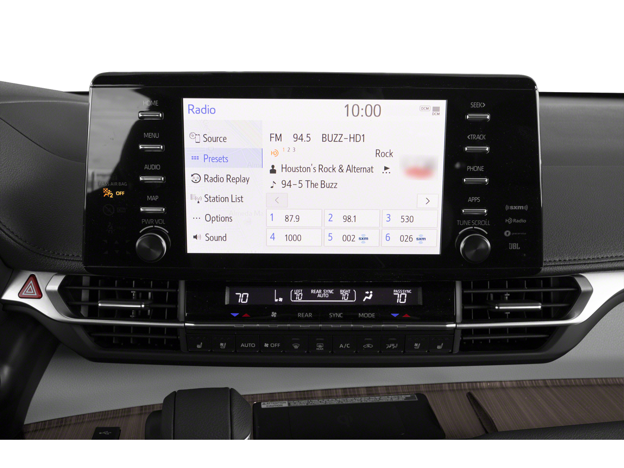 - Radio: Toyota JBL Audio w/Navigation -inc: 12.3" display, 12 JBL speakers including subwoofer and amplifier, wireless Apple CarPlay, Android Auto compatibility, SiriusXM 3-month trial subscription, See toyota.com/connected-services for details