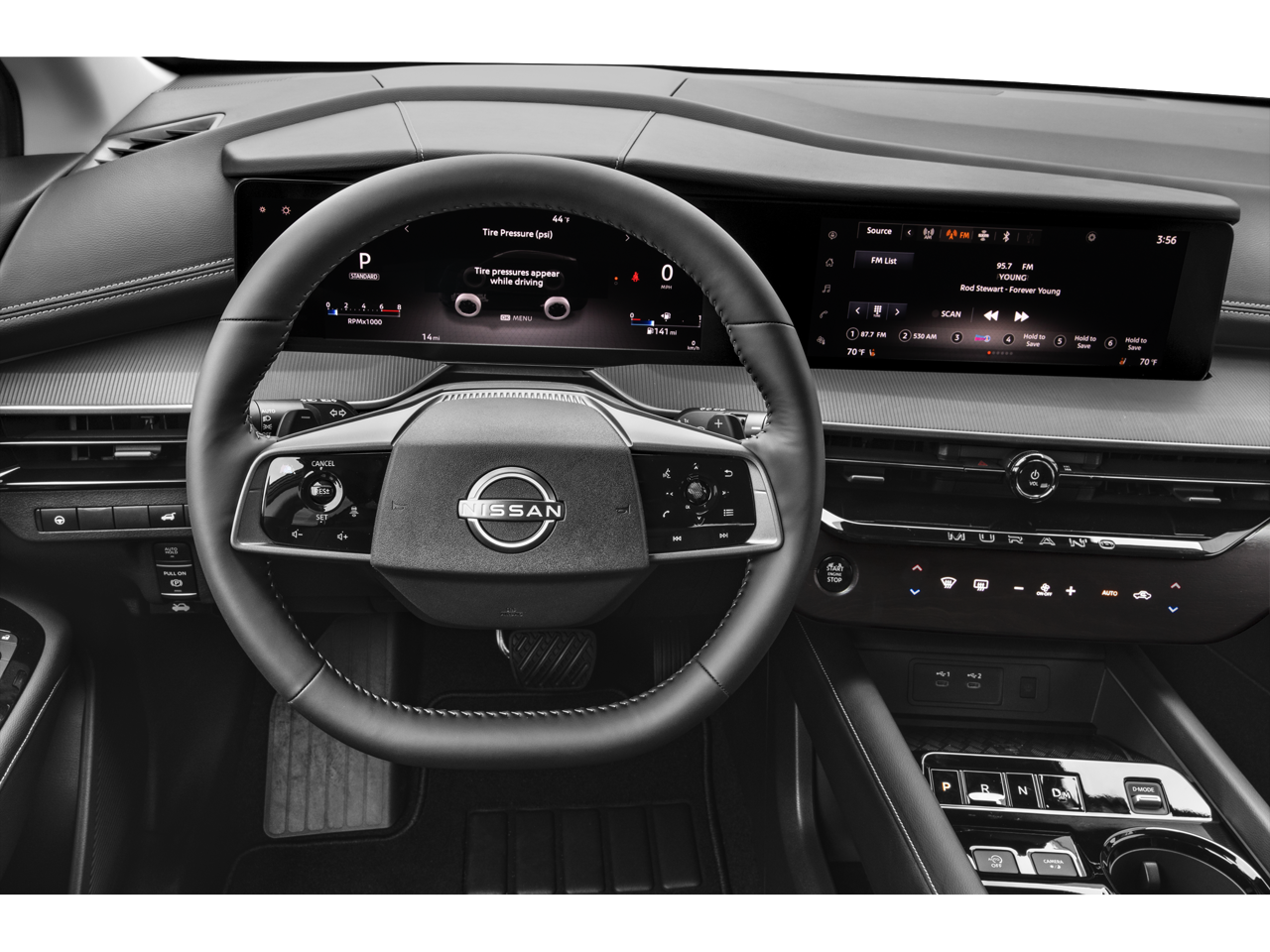 - Radio: NissanConnect -inc: 6 speakers (2 A-pillar, 2 front door, 2 rear door), 12.3" color touch-screen display, wireless Apple CarPlay, wireless Android Auto and 2 front and 2 rear USB type-C charge and data